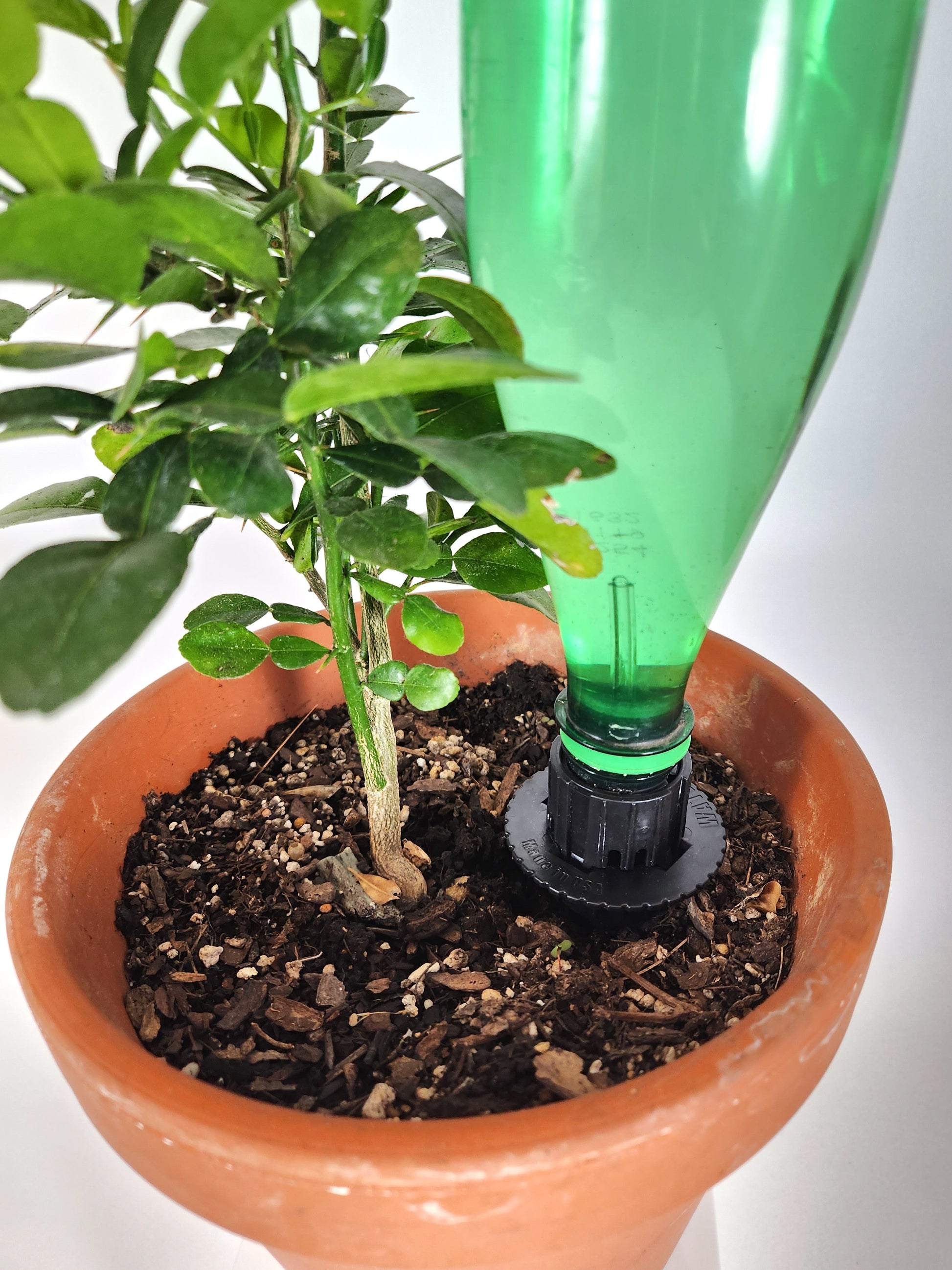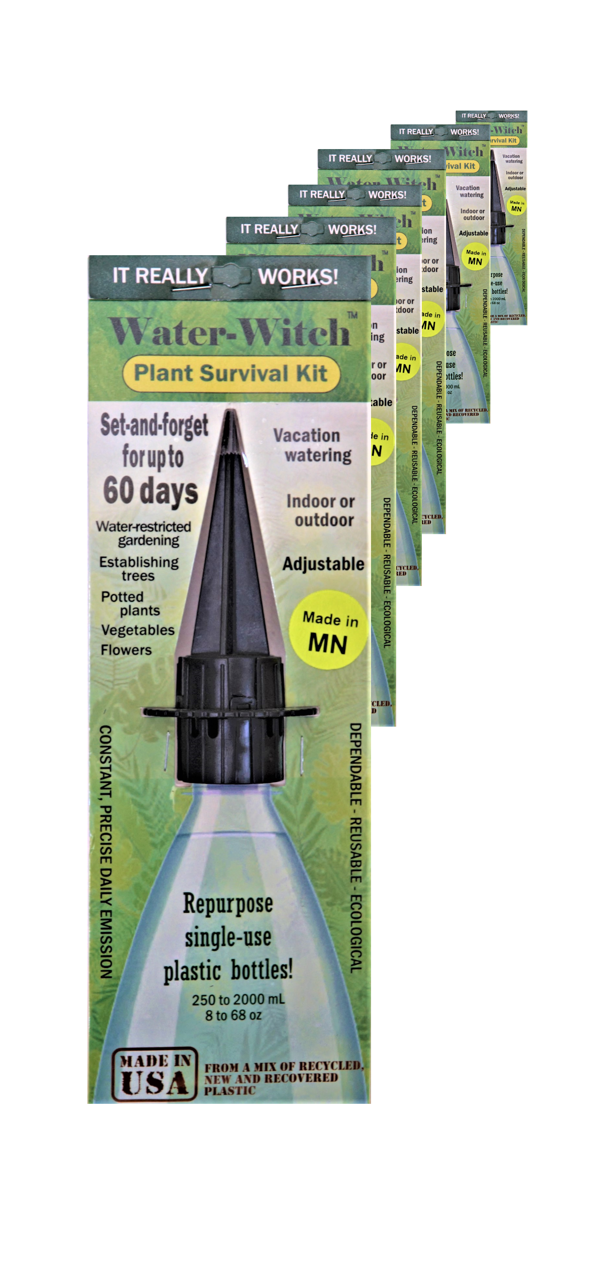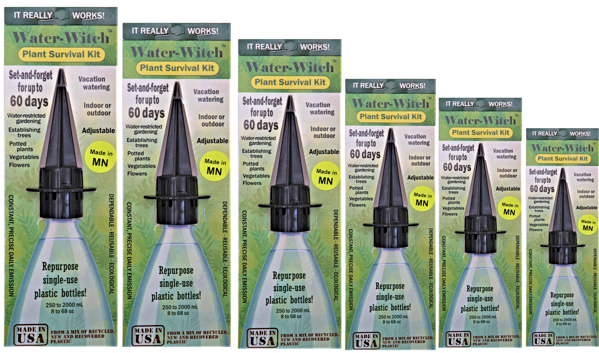 The Water-Witch™ converts a used plastic bottle into an individual Plant Survival Device that will sustain a plant for up to 60 days. Whether you are planning a vacation, simply want to take better care of your plants, or even are a serial plant killer, the Water-Witch™ helps your plants thrive!